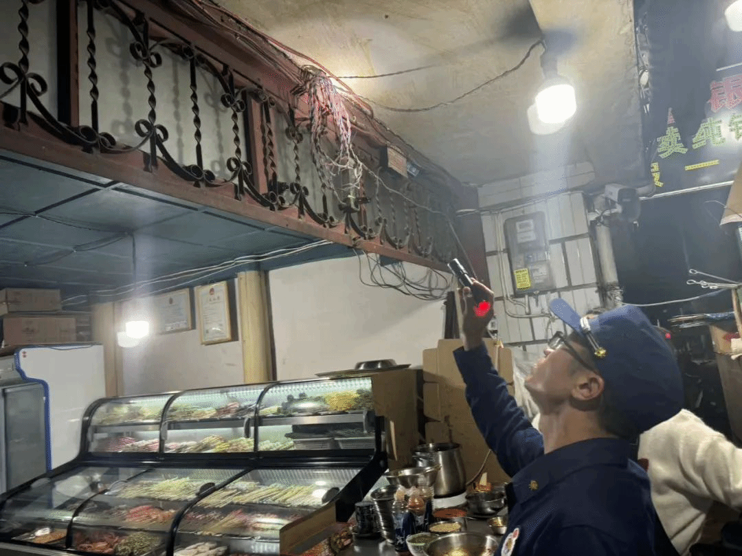 夜幕降临后,镇经济发展办联合镇安派出所、镇综合行政执法队等部门组成安全检查工作专班,本着“严、细、实”的原则对辖区内消防器材设施、消防通道、供氧设施、监控设备、“三防”设施等重点部位和环节进行了地毯式的安全隐患排查,对发现的问题进行了现场指导,要求商户限期整改,定期开展自检自查,切实增强安全防范意识和应急处置能力,树牢安全发展理念,做到防患于未然。