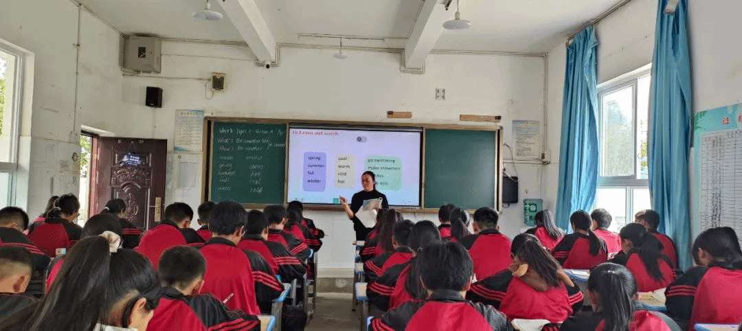 比赛结束后,由龙陵县第二中学的李老师上片区示范课,她以Unit8 Topic1 What’s the weather like in summer? SectionA为课题,教会了学生季节的相关英语单词,以及重点的句子,重点突出,教态亲切自然,教学氛围活跃,给观摩的全体师生上了精彩的一堂示范课。