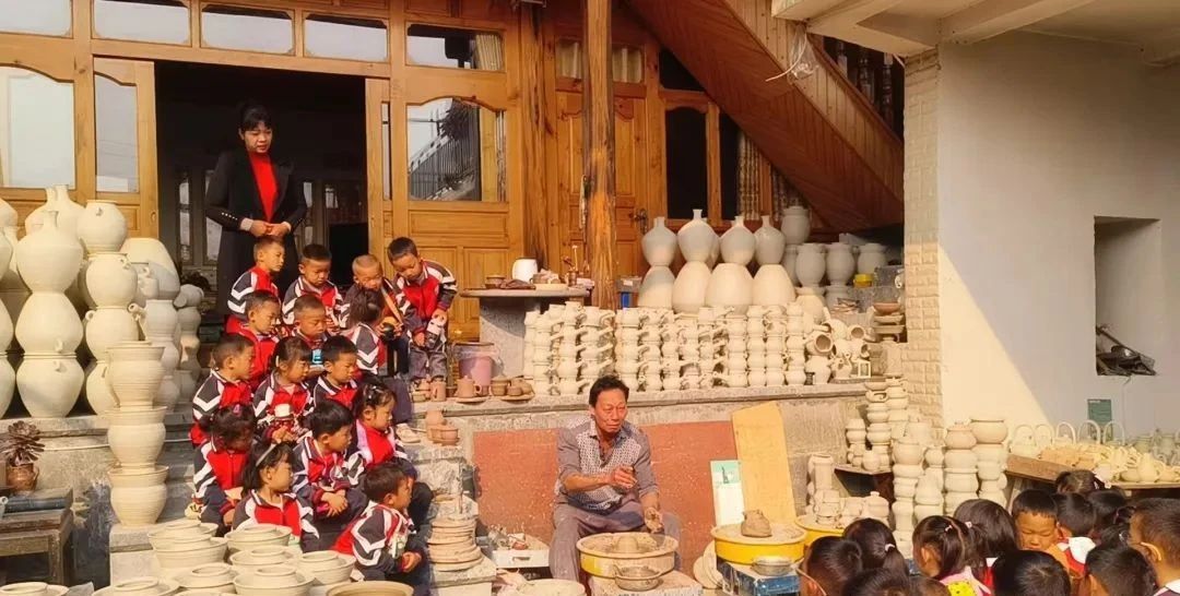 活动首日,孩子们在老师的陪同下走进土陶工作坊。匠人现场演示拉坯、塑形、雕刻等传统技艺,一团团陶泥在匠人手中化作花瓶、茶盏,引得孩子们连连惊叹。