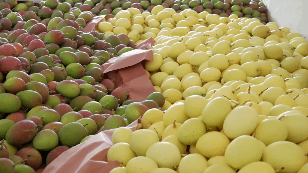 邦别村种植芒果已经有14年了,这几年,芒果这项产业是这个村里大部分人的经济来源,经过技术指导,年产量已经达到了7000吨,每年销售额可达3000万元。邦别村的党总支书记杨自科介绍起邦别的芒果满是欣喜。