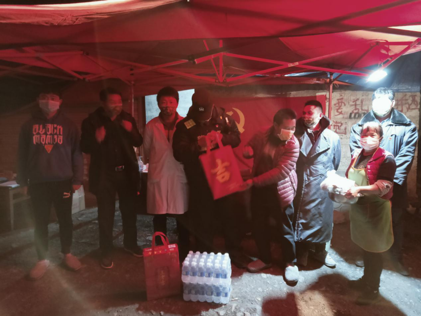 健康检测点值班民警周永寿:龙新的夜晚很冷,我们的工作也很辛苦,但有很多像刘大姐一样热心的村民在支持着我们,温暖着着我们,我们一定为村民们站好岗、值好班。