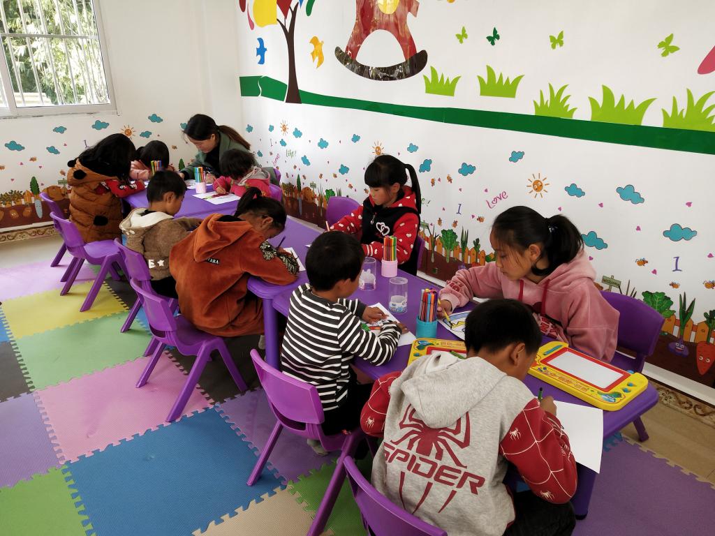 一个“小家”解童忧。2018年7月勐冒村委会经与廖家寨村民代表讨论,社区儿童之家也搬进了小组活动室,一间面积50平方的活动房成为了孩子们的根据地。在这,您能看到他们欢天喜地的一起画画、看书习字,既增进了孩子们的友谊,也让在外辛苦劳作的家长更加放心。