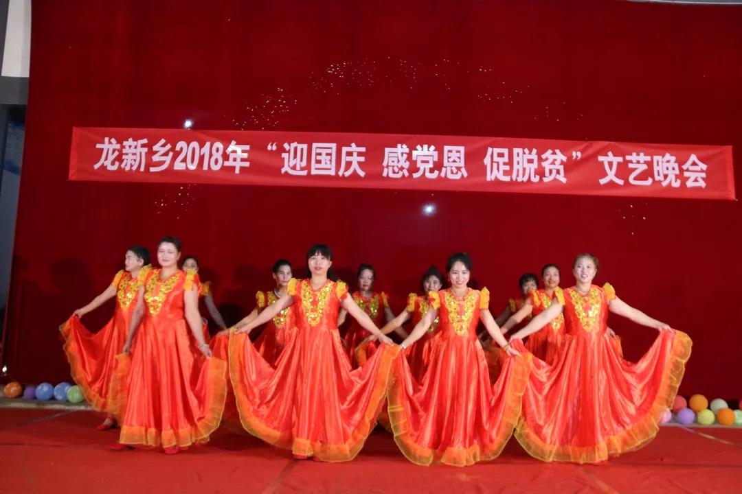 晚会开始前,龙新乡宣传委员和蚌渺社区党总支书记为晚会致辞。蚌渺社区农民艺术团用傈僳族舞蹈《刮说亲家麻亲家》拉开晚会序幕,一时间充满浓郁地方色彩的节目好戏连台,五千年龙腾虎跃演不衰的《中国大舞台》,华夏儿女向中国母亲的致敬《今天是你的生日我的中国》,婉约又豪迈的《中国美》,真真切切唱出百姓的心声,观众拍手叫好;经过改编的诗歌《扶贫政策之歌》娓娓道出各类扶贫政策,让百姓明白了“脱贫光荣,争贫可耻”这个道理。
