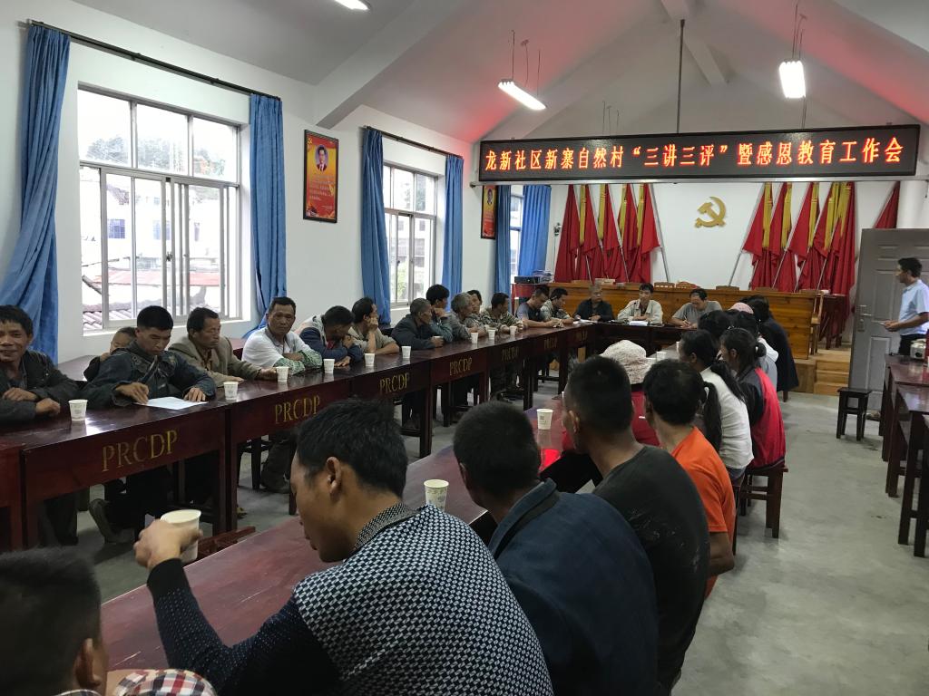 二是开好支部党员大会。以“两学一做”学习教育常态化制度化为抓手,以开展“三会一课”为契机,及时补课、补脑、补钙,提升党员干部政策水平和服务群众能力,充分激发党员的先锋模范作用,以党员带动群众,推动龙新社区脱贫攻坚工作开展。