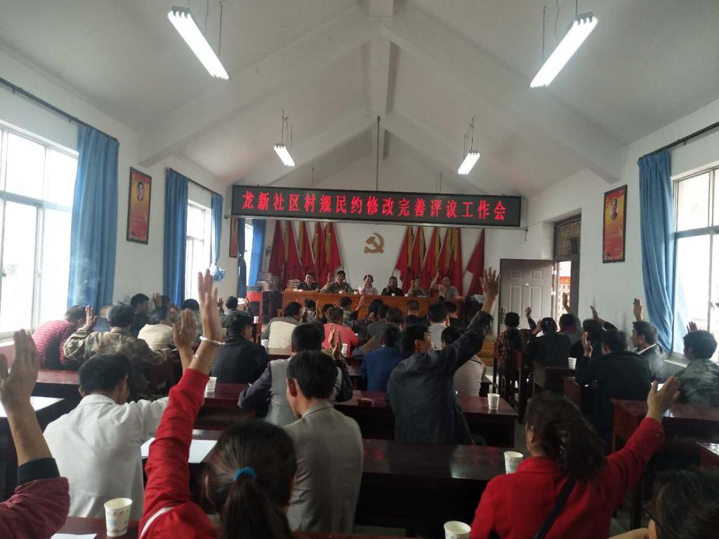 二是以修改完善村规民约为工作抓手,健全做好人居环境整治工作的体制机制。通过召开村规民约评定等会议,结合脱贫攻坚等重点工作,干群达成共识,逐级压实责任,把整治工作纳入《龙新社区村规民约》,完善整治工作的要素保障。