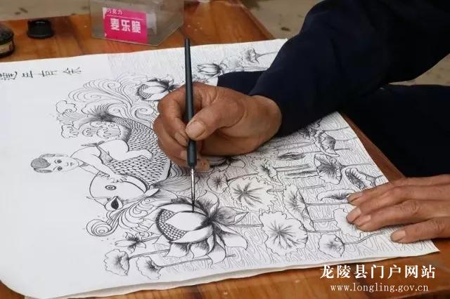 他叫刘祥德,家住龙陵县龙新乡龙新社区大桥组,现年62岁,小学没读几年就辍学了。见到老人家时,他正在专心致志地绘画,一幅《连年有余》的作品即将完工,简易的四方桌上堆叠了许多作品。