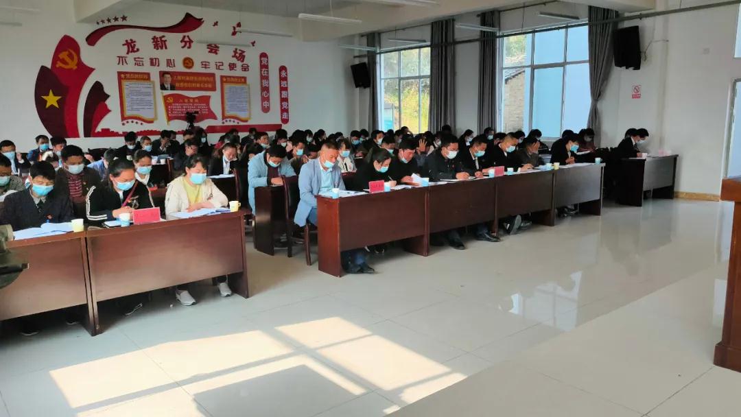 会议听取了乡党委书记代表中国共产党龙新乡第十一届委员会作的题为《砥砺奋进,蓄势扬帆,全面开启龙新社会主义现代化建设新征程》的党委工作报告。报告回顾总结了龙新乡过去五年在脱贫攻坚、产业发展、基础设施、生态文明、社会事业、民主法治、党的建设等方面取得的成绩。报告指出,五年成绩的取得,得益于龙新乡始终坚持贯彻落实习近平新时代中国特色社会主义思想,做到心中有信念,脚下有力量;得益于龙新乡始终坚持中央、省、市、县各级党委、政府的正确领导,做到心中有目标,前进有方向;得益于乡村组干部和全乡党员群众凝心聚力、奋勇拼搏,做到心中有责任,干事有担当。