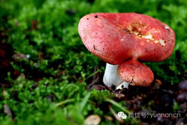 毒红菇又名呕吐红菇,浅粉红至珊瑚红色,边缘颜色较淡。食后主要引起胃肠炎型中毒症状,死亡率80%左右。其外形特征与可食的红菇相似。但红菇菌盖边缘平滑无纹,味不很辣。