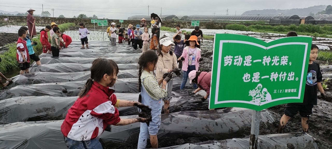 夏日不燥,景致正好。在研学实践基地,面对希望的田野,同学们兴致勃勃,在听取专业技术人员的讲解后,纷纷动起手来,整地、挖穴、撒种、填土、施肥……忙得不亦乐乎,田间地头呈现一派热闹的景象。同时,在场的老师也对现场的农耕主题元素进行介绍,让同学们了解中国农耕文化的起源与发展,感受中国农耕文明的魅力与风采,凝聚奋进力量。
