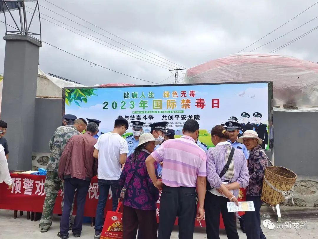 2023年6月26日是第三十六个国际禁毒日,为加大禁毒宣传力度,进一步增强广大人民群众识毒、防毒、拒毒、禁毒的意识和能力,营造全民禁毒浓厚宣传氛围,龙新乡派出所、禁毒办、村(社区)配合龙陵县禁毒工作委员会开展了以“健康人生 绿色无毒”“参与禁毒斗争 共创平安龙陵”为主题的宣传活动。