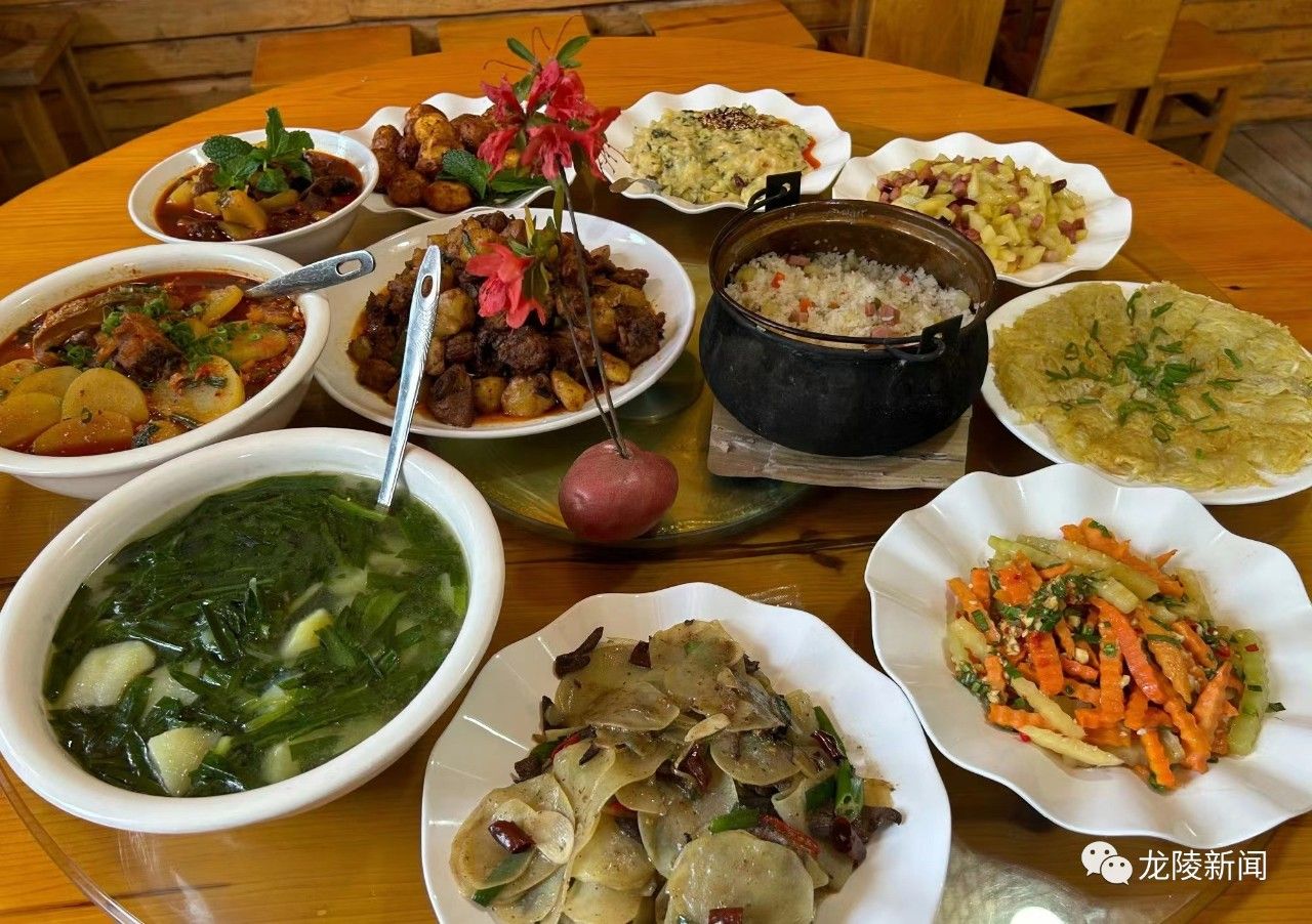 龙新乡依托生态环境优势,聚焦山地生态农业,抓好绿色农业产业发展。以无公害、无污染、无添加的安全种养核心理念,大力种植玉米、苦荞、马铃薯、青菜等粮食蔬菜,绿色种植出的粮食蔬菜品质上乘、口感良好,多次销往省内外各地。同时发展种植石斛、重楼、续断等中药材,创新石斛馒头、石斛汁、石斛炖鸡、重楼炖鸡等特色养生食品,做到口感养生两不误。推广生态肉类,黄草坝毛驴肉、黄焖鸡,蚌渺生态鱼、火烧藏香猪,雪山腊肠、腊肉肉质肥美,味道极佳,最大限度地保留了大自然的原汁原味,让游客在放松身心的同时,品味到独特的乡土风味。