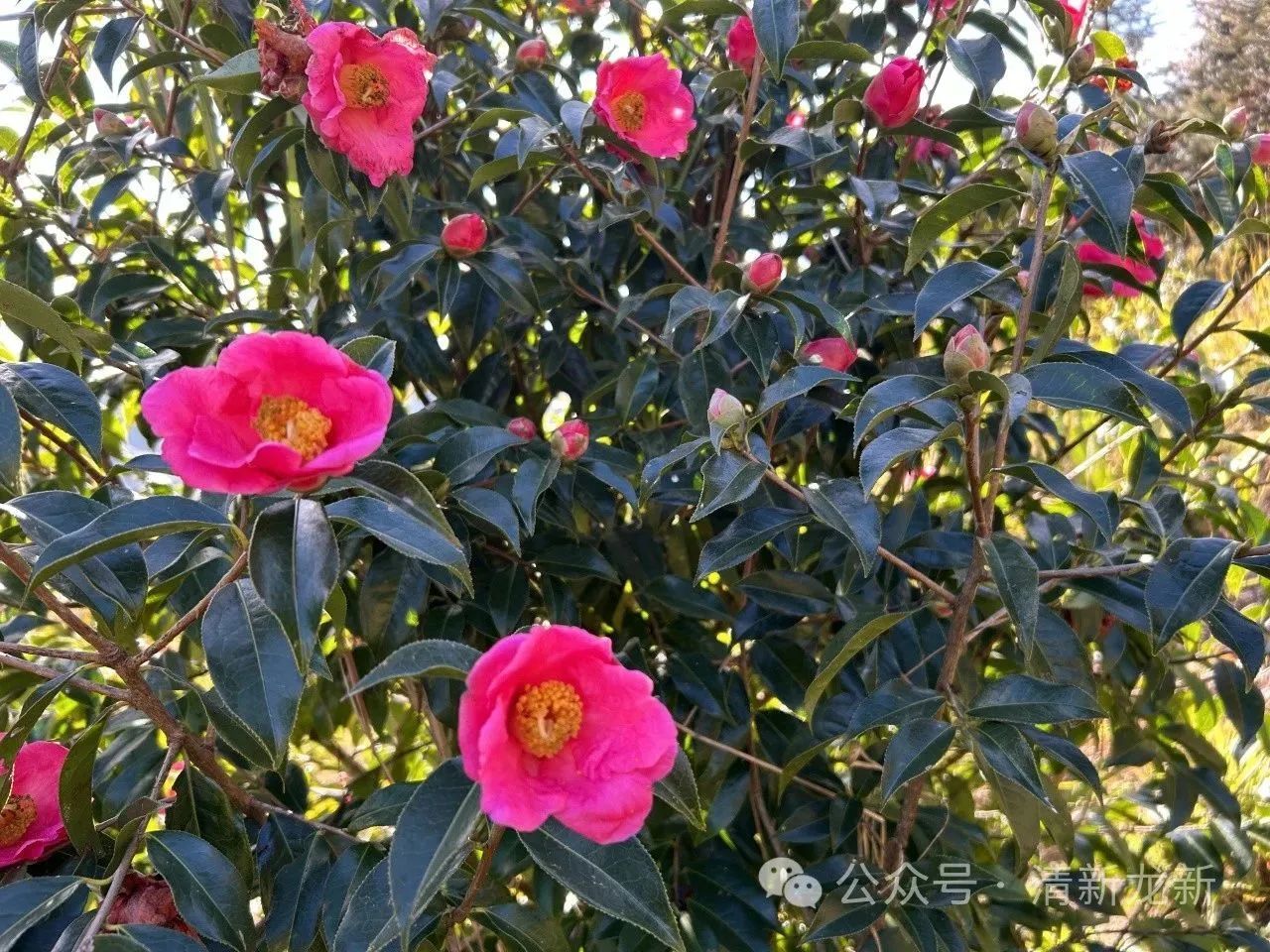 红花油茶,属山茶科,茶树树形较大,对土壤的要求不高,较能耐旱,可在荒山种植,但不宜种植过密,需要充足阳光才能正常开花结果。其花期较长,茶果还可以加工成茶油,是集观赏、经济于一体的植物。
