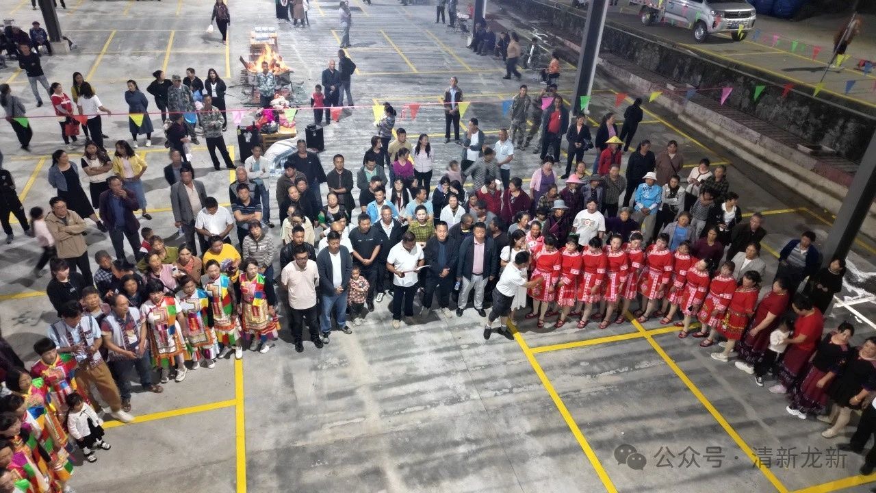 开幕仪式上,龙新村的村民们欢聚一堂,现场燃起了熊熊篝火,大家围着篝火翩翩起舞,鞭炮声、欢笑声,热闹非凡。