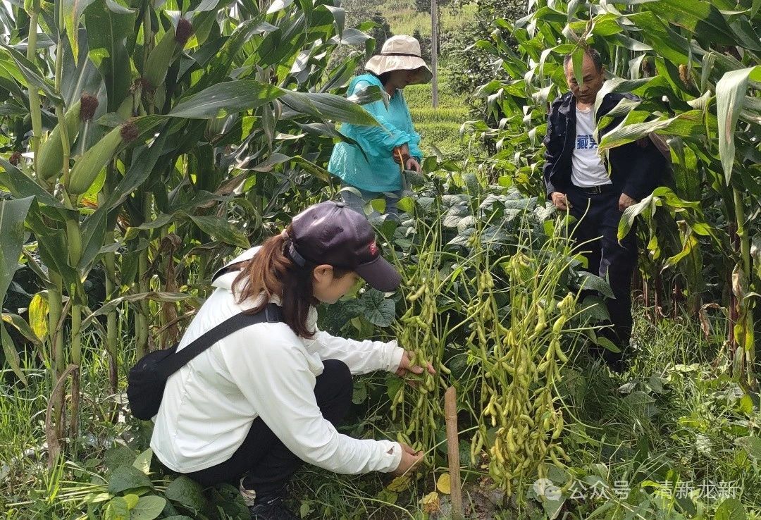 在大豆玉米带状复合种植地块,一排排玉米长势喜人,玉米行间套种的大豆迎来收获期,枝头挂满色泽金黄、颗粒饱满的豆荚。技术人员根据大豆玉米田间测产的标准和要求,现场随机选点,科学取样,详细记录,按照实地测距,测株高,数株数、分叉数、豆荚数、实粒数等环节进行测产。据统计,根据种植地块的海拔、气候、肥力、品种、种植密度等条件不同,对18个点进行了抽样测产,还对齐黄34、川豆155、川鲜1号3个小品种的试种进行了测产。