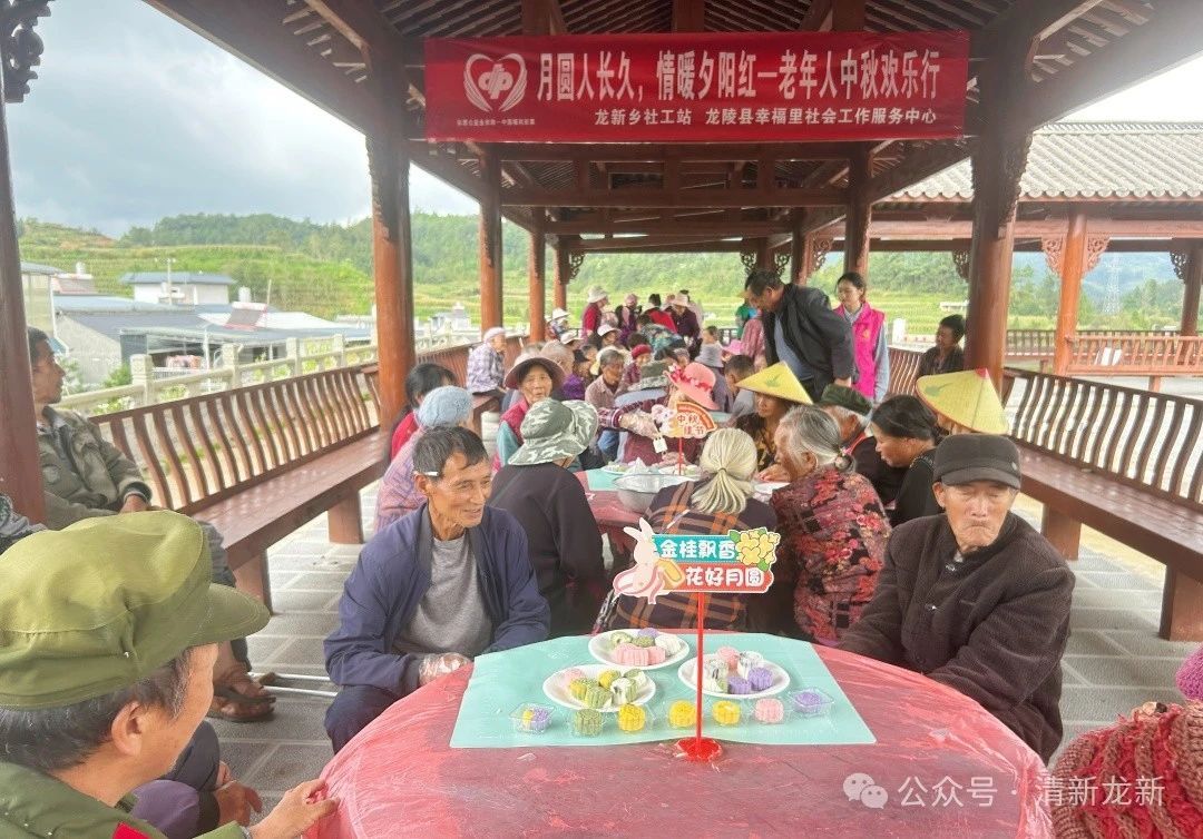 花好月圆,情满中秋。在中秋佳节来临之际,为进一步弘扬中华优秀传统文化,铸牢中华民族共同体意识,丰富老年人精神生活,增进邻里之间的交流与互动,9月13日,龙新乡志愿服务队联合龙新乡社工站在龙新乡龙新村新时代文明实践站共同开展“月圆人长久,情暖夕阳红”主题老年人欢乐行活动,活动共计50余人参加。