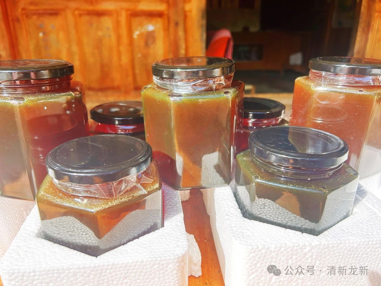 龙新冬蜜是在冬至前后收获的蜂蜜,多以百花蜜为主,纯手工自然采集,纯净无添加。冬蜜的颜色一般要比其他季节的蜂蜜更深,通体澄黄,宛如“液体黄金”,质地分外浓稠,入口香甜,不仅可以直接食用,还可以泡蜂蜜水、制作调料、烹饪菜品,吃法多多。