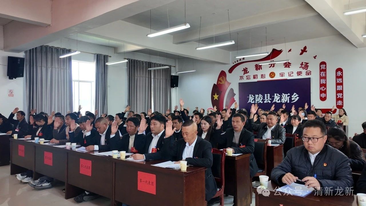 大会听取了乡党委书记匡建国同志代表中国共产党龙新乡第十二届委员会作的题为《凝心聚力 攻坚克难 奋力谱写龙新高质量发展新篇章》的工作报告。报告总结回顾了龙新乡2024年在党的思想建设、特色产业发展、绿美乡村建设、民生福祉增进、基层综合治理等方面的主要做法及成效,全面总结了2024年龙新乡取得的成绩和存在的不足,规划提出2025年工作思路和重点任务。