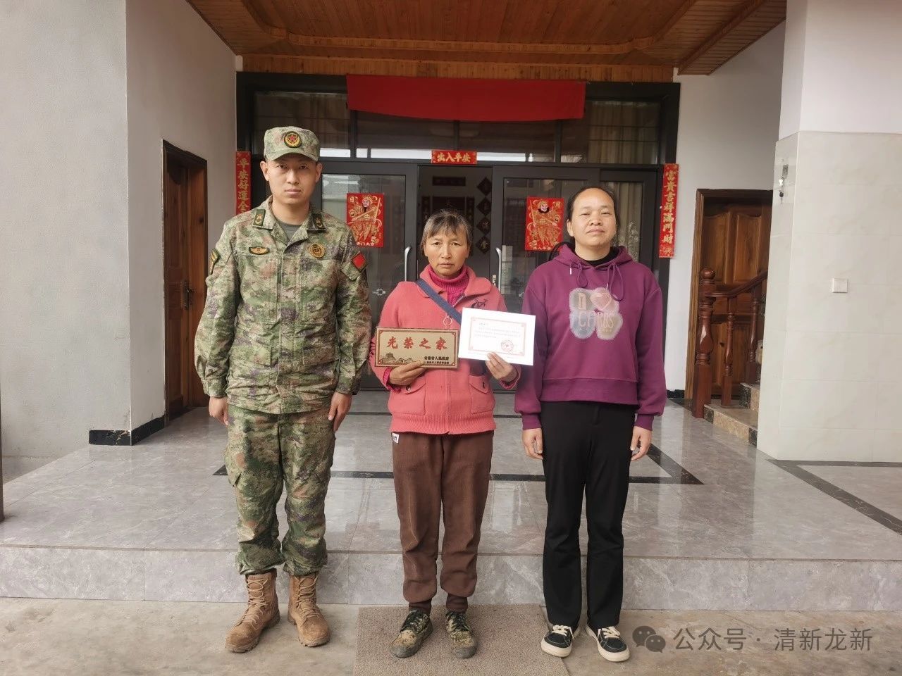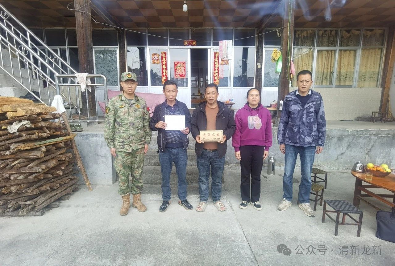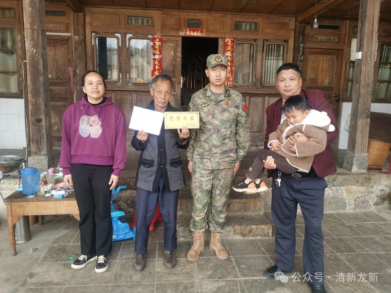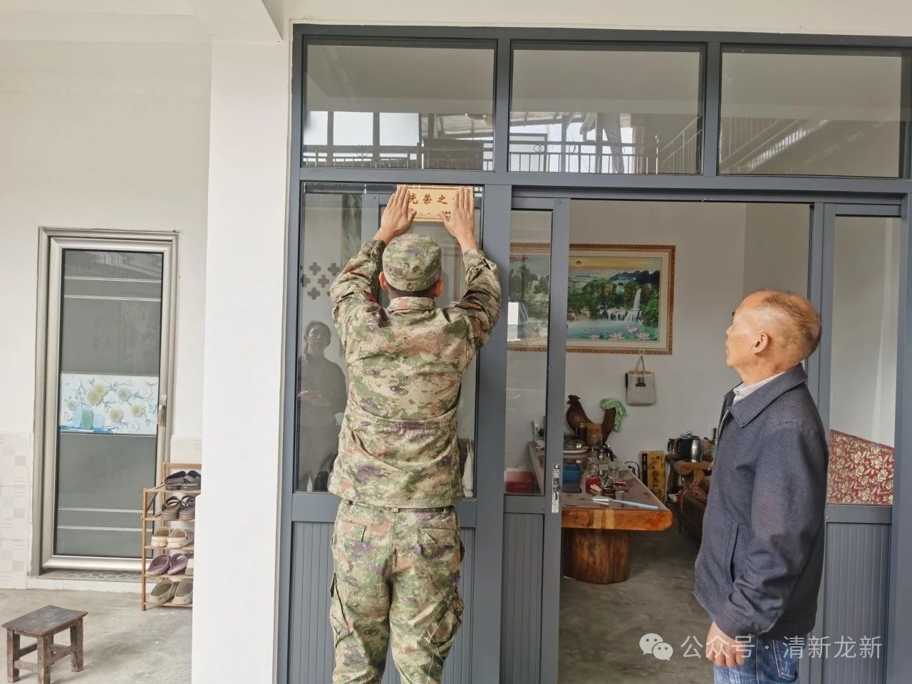 为大力弘扬拥军优属优良传统,增强军人军属荣誉感,3月24日至25日,龙新乡武装部、退役军人服务站为2025年春季入伍的新兵家庭悬挂“光荣之家”牌匾,发放入伍通知书。