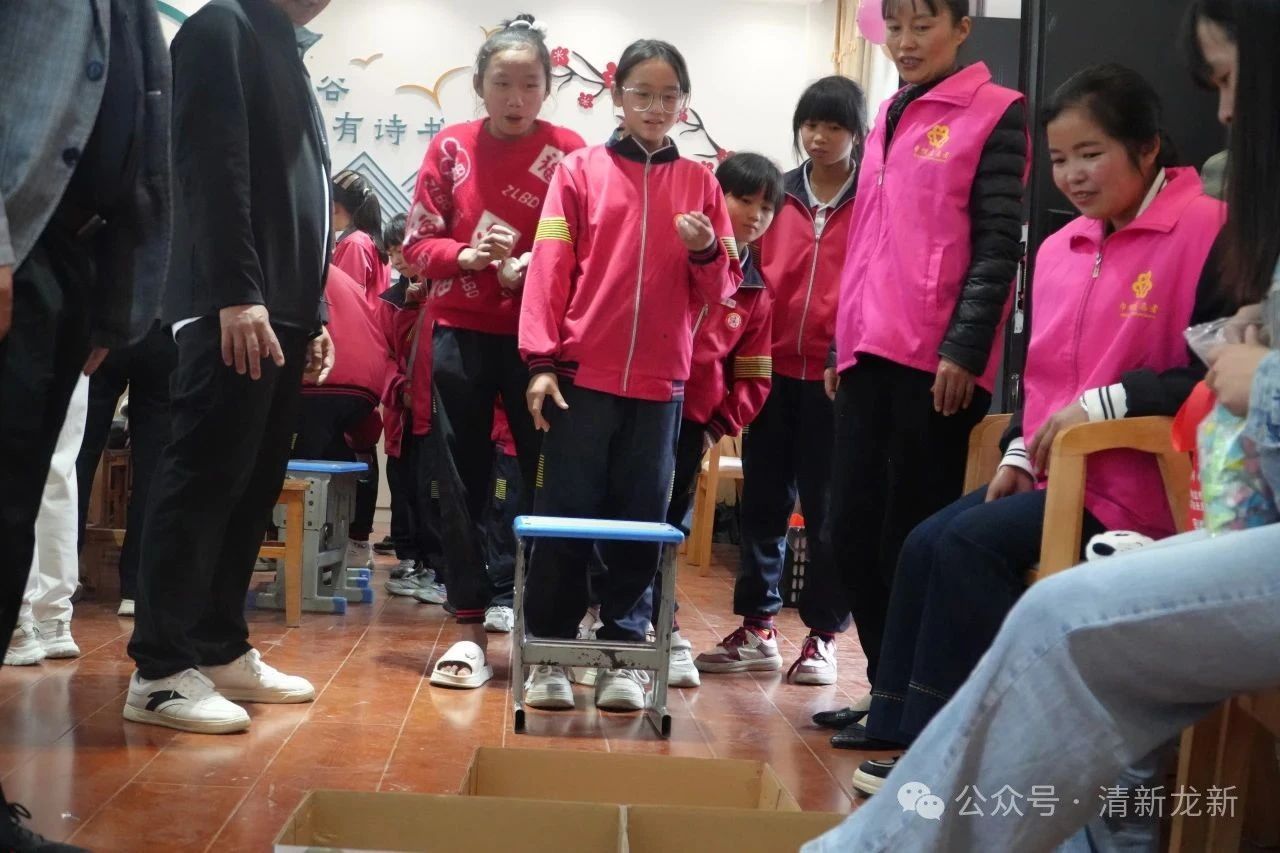趣味游戏促互动,欢声笑语传温情。游园活动将现场氛围推向高潮,孩子们对游戏期待满满,跃跃欲试。“盲人击鼓”游戏中,孩子们蒙眼摸索击鼓,同伴的加油声此起彼伏;“掌上明珠”游戏中,孩子们屏息凝神,托着乒乓球稳步前行,紧张又逗趣的场面引得笑声连连。最受欢迎的是“弹乒乓球”挑战赛,大家为同学们精准的技术而鼓劲喝彩。孩子们在互动中感受团结,在陪伴中获得快乐。