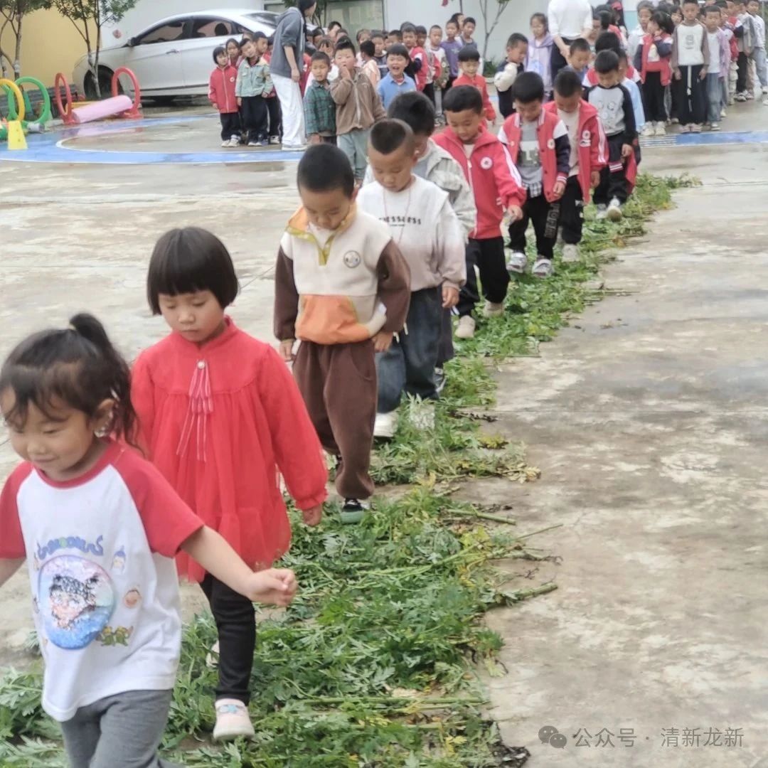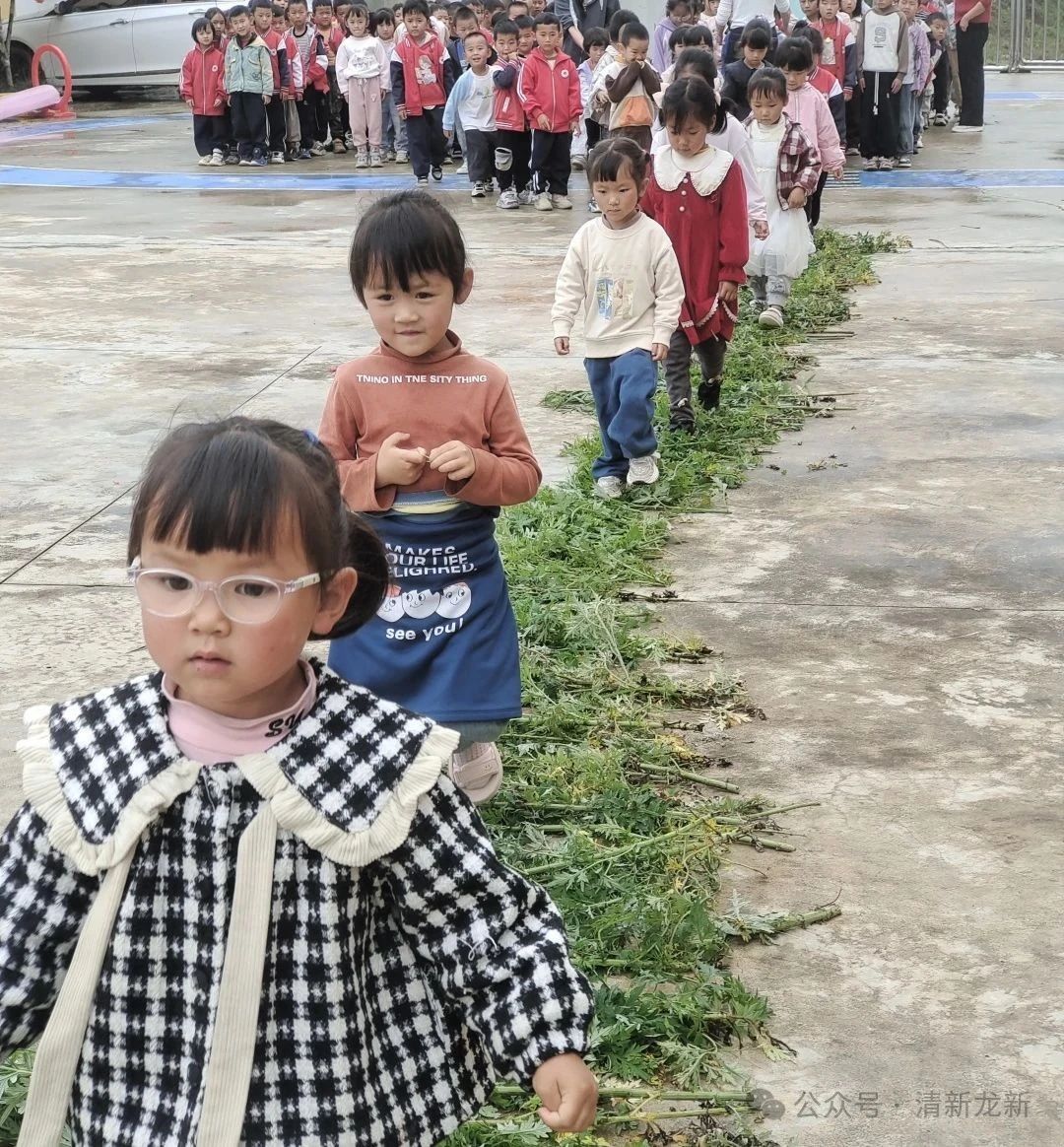 踩艾草,百毒不侵迎安康。活动伊始,老师们提前将新鲜艾草铺成一条散发着清香的“艾草小路”,翠绿的叶片层层叠叠铺满地面。孩子们排着小队,在老师的引导下赤脚或穿着软底鞋轻轻踩过艾草。脚下传来叶片柔软的触感,空气中弥漫着浓郁的草药香,老师一边带领孩子们踏步,一边讲解“踩艾草寓意百毒不侵、百病不侵”的民俗传说。孩子们好奇地低头观察脚下的艾草,有的轻轻跳跃,有的放慢脚步感受叶片的纹路,清脆的笑声与艾草的清香交织在一起,构成了独特的节日仪式感。