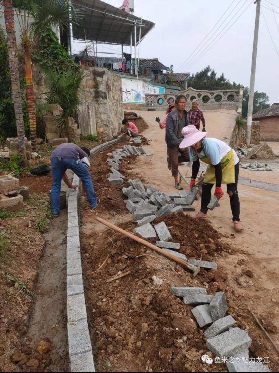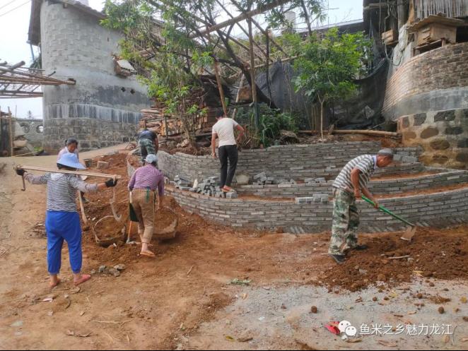 为深入推进农村人居环境、爱国卫生“7个专项行动”、厕所革命等工作,充分动员群众,改善人居环境,打造科学规划生态、产业发达、宜居宜业宜游、富有文化韵味的新型美丽乡村,大新寨村以汇龙村民小组为示范村,通过动员群众,大力鼓舞汇龙村民开展龙江乡美化家乡“一村一示范”专项行动工作,激发群众积极性,主动投工投劳,立足自力更生美化家园;村民积极响应,将全组46户分为8个小组,每天投入4个小组进行轮换作业,实现了生产、建设两不误。施工现场群众热情高涨,老老少少齐上阵,心往一处想,劲往一处使,脸上带着笑容头上沾满汗水,不怕苦不怕累,该挑的挑,该挖的挖,各自在为美好家园建设而努力。