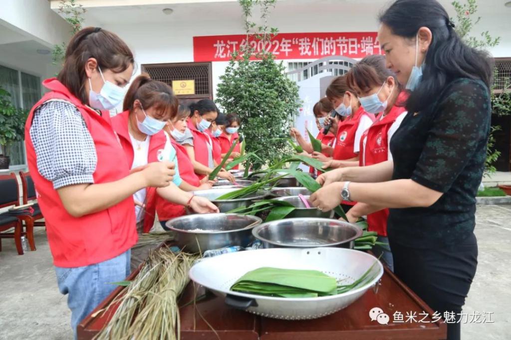 端午近,粽香飘。为大力培育和践行社会主义核心价值观,更好地利用传统节日弘扬中华优秀传统文化,挖掘传统节日的文化和精神内涵,丰富群众精神文化生活,6月2日,在端午节即将到来之际,龙江乡在龙江乡新时代文明实践所举行“我们的节日·端午”包粽子系列活动,乡文化广播电视服务中心工作人员、村级工作人员、志愿者、爱心人士及志愿者等30余人参加活动。