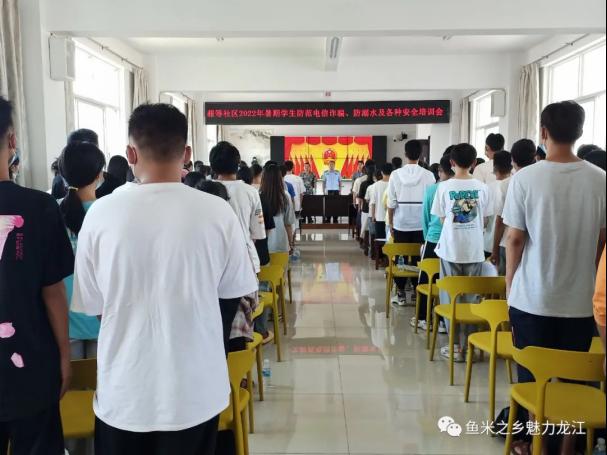 为强化返乡学生的安全意识,进一步丰富其暑期生活,增强服务群众的意识,提升返乡学生家乡荣誉感,增强感恩意识,让学生度过一个安全、愉快的假期。近日,龙江乡赧等社区邀请龙江派出所、司法所组织返乡学生召开赧等社区2022年暑假学生防范电信诈骗、防溺水及各种安全宣传教育活动,共计100余名学生参加此次培训。