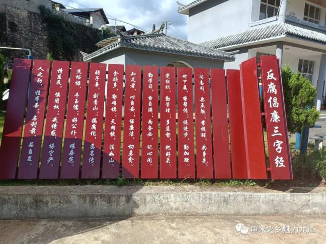 为着力打造廉洁文化宣传教育新阵地,强化农村基层党员干部党风廉政教育,龙江乡大汉坝村,在各级党委政府的支持下,始终将党建引领贯穿社会治理全过程,结合龙江乡开展的弘扬礼仪之风,共建善美龙江“一村一示范”专项行动,以作风大转变、效能大提升为目的,结合“党支部+党员+群众”的发展模式,积极探索创新廉洁教育的形式和载体。大汉坝村委会立足本地特色资源,将家风文化与廉洁文化紧密结合,形成了富有本地特色的廉洁教育示范点。