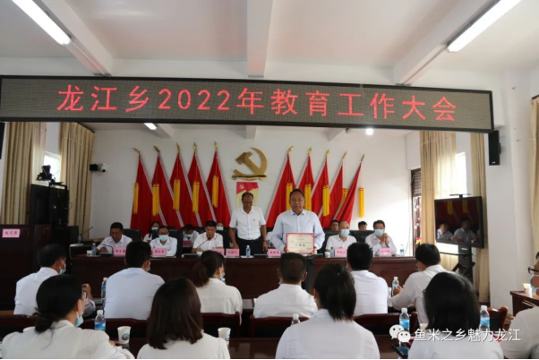 三尺讲台,三寸舌,三寸笔,三千桃李;十年树木,十载风,十载雨,十万栋梁。9月3日,在喜迎第38个教师节即将到来之际,龙江乡组织召开了2022年教育工作大会。参加今天会议的人员有乡党委政府班子成员,各村(社区)党总支书记,全乡各中小学校校长、教导主任,幼儿园园长以及受表彰教师,共80余人。