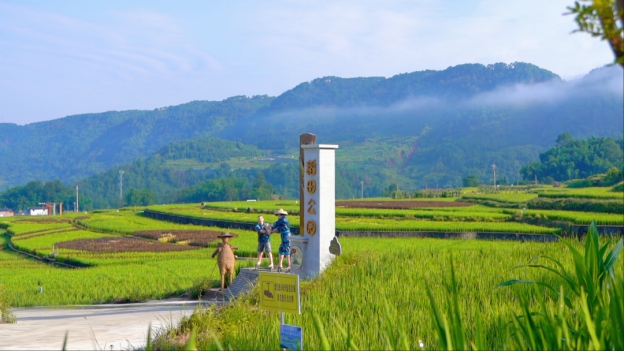 在龙江万亩梯田上,“稻田公园”是龙江乡今年着力打造的一个乡村振兴示范点,进一步推动全乡基本农田保护、粮食安全落实。公园里,饱经岁月洗礼的田房、“啪啪”作响的水响耙、农耕传承和五谷丰登造型、开满格桑花的田间“幸福路”、彩稻画“庆祝党的二十大”、鱼跃龙门等以“农耕文化”为主题的景点景观点缀着成片的稻田;远处是绿树翠竹环绕的弄岗寨,白鹭纷飞、炊烟袅袅,寨子里有民宿、农家乐等,吃住行娱购功能逐步完善。这些景观和当地田园风光融合在一起,满满都是诗情画意。