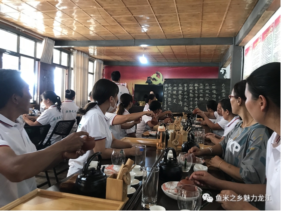 培训现场,村民们认真聆听茶艺老师讲解茶叶类别基础知识、茶具的使用、茶道礼仪等方面的知识,并在茶艺老师的指导下识茶、泡茶、品茶,就茶文化与乡村振兴、产业发展、乡村文明、家风建设等方面进行了交流。