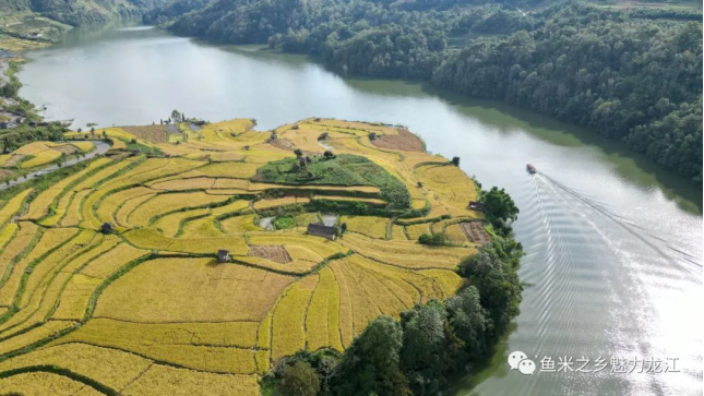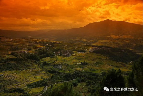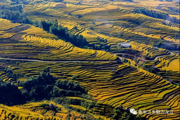 龙江“万亩梯田”的稻子,在不知觉间已悄悄的变幻,万亩水稻成熟,金黄的稻浪摇荡在层层叠叠的梯田中,镶嵌在崇山峻岭之间,构成一幅绝美田园丰收图画。
