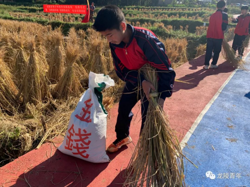 挂牌仪式结束后,所有参加活动的人员在工作人员带领下,开展“金秋迎丰收 实践助成长”实践活动,下田亲自体验割稻子、打谷子、绑草人等收割过程,每个人脸上都写满了一分耕耘一分收获的喜悦。汗水带来收获,参加活动的同学们纷纷表示:通过活动的开展,使大家更加懂得“锄禾日当午,汗滴禾下土;谁知盘中餐,粒粒皆辛苦。”的艰辛,珍惜粮食的来之不易。今后,在牢牢掌握好书本知识的同时,也会积极参加各类实践活动,积极培养动手能力,在知识的学习和实践过程中不断完善自己,提升自己。