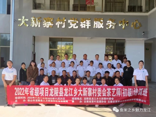 2022年11月,在保山市人力资源和社会保障局的关心下,云南云茶职业技能培训学校的茶艺老师到龙江乡大新寨村开展了为期15天受训31人的茶艺师技能培训。本次培训内容理论知识结合实操技能,主要从茶叶专业知识和茶叶冲泡、茶园管理等方面开展培训。通过培训,让广大群众认识了高端茶和生态茶的意义所在,对以后发展茶叶有了新的方向,不要一直停留在台地茶走量的思想观念上。同时对职业道德、茶文化、礼仪、接待、茶艺展示等,提升了科学饮茶和促进茶叶健康生产存运,做到识茶辨具,认识所有器具,正确使用茶具冲泡好每一杯茶,泡好家乡茶讲好家乡茶。