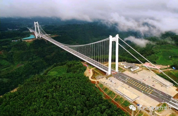 龙江特大桥:龙江特大桥位于龙江乡邦焕村,目前为亚洲第二高桥。龙江特大桥全长约2.4公里,桥面距谷底286米,宽24.6米,有2个桥墩,每个桥墩用1500多立方混凝土浇灌而成,桥体由若干钢绳相连,每个钢绳直径为1.2米,工程投资14.6亿元。每至清晨,江雾茫茫,行走在龙江大桥上,仿佛置身于一片云海之中,而龙江大桥就是那条在云中的路。