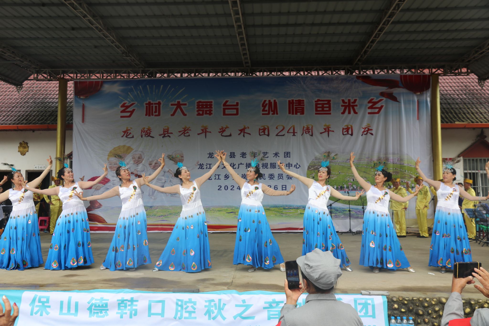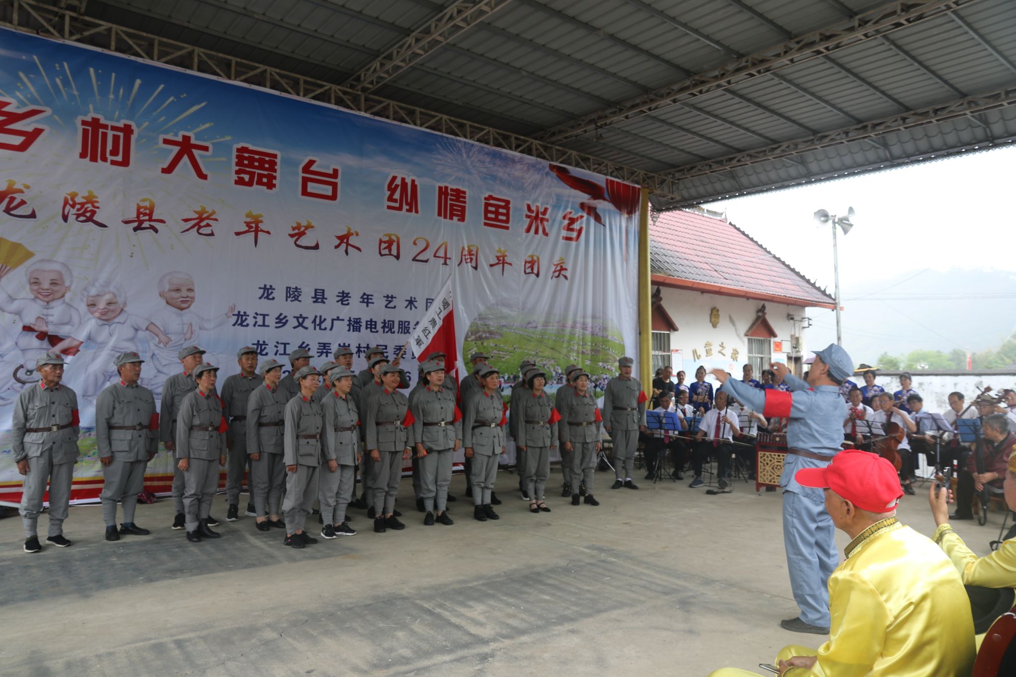 2024年5月26日,尽管天空细雨绵绵,但龙陵县老年艺术团的团员们热情不减,他们在龙江乡弄岗村欢聚一堂,共同庆祝艺术团成立24周年。活动现场,来自德宏州常青合唱团和保山秋之音娱乐团的嘉宾们为观众带来了精彩的表演。