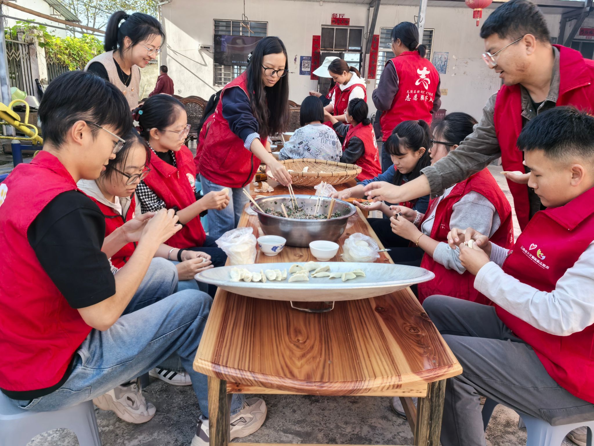 正午时分,敬老院的食堂里飘起饺子香。志愿者与老人们围站在桌前,调馅、捏褶。“我在这儿干了37年,重阳节包饺子是一个传统了。”敬老院工作人员罗明从在厨房里忙碌着。“老人们就怕冷清,志愿者来陪着吃顿饭,老人嘴里乐,心里更暖,整个院子都活跃了不少。”