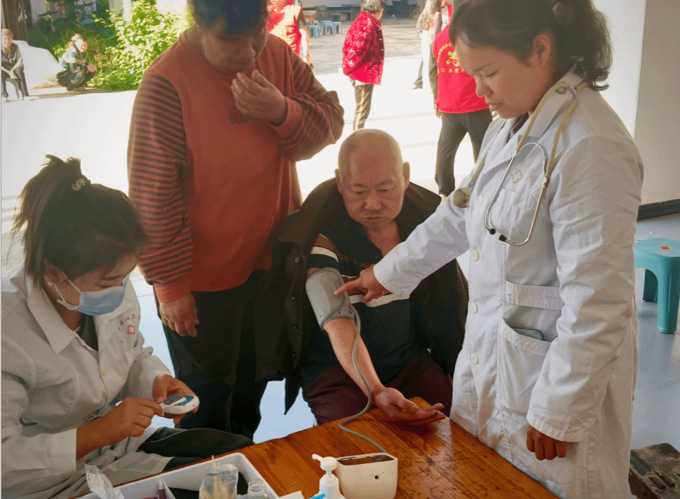 活动现场,龙江乡卫生院的医护团队带着血压仪、听诊器等设备搭起“临时诊台”,为老人开展免费健康体检。“他的血压有点高,降压药得按时吃”“犯了关节炎晚上用温水泡泡脚能缓解”——针对高血压、关节炎、腰腿痛等老年常见问题,医护人员一边为老人检测,一边给敬老院院长说着注意事项。晏秀菊老人感慨:“现在党和政府对我们的关心很到位,实实在在感到贴心啊!”