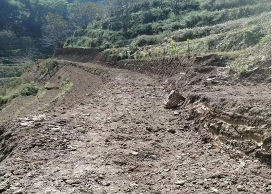 中岭岗村地处高寒山区,山高坡陡,基础设施建设就不可避免的成为了中岭岗村的短板,虽然经过多年努力建设,中岭岗村入户路全部已修通,但机耕道修建比较滞后,连片种植的粮食作物收种基本全靠人背马驮,造成了人工成本很高,效率低下,栽种和采摘造成了极大的困难。一条羊肠小道,两边杂草丛生,一人勉强能够通行。一直以来,开挖机耕路也是村民们热切盼望做的事情,然而,由于各种因素,修路之事屡屡受阻,进展不顺,多年过去,路还是那样狭窄、陡峭。久而久之,百亩良田,成为村民们的一块“心病”。
