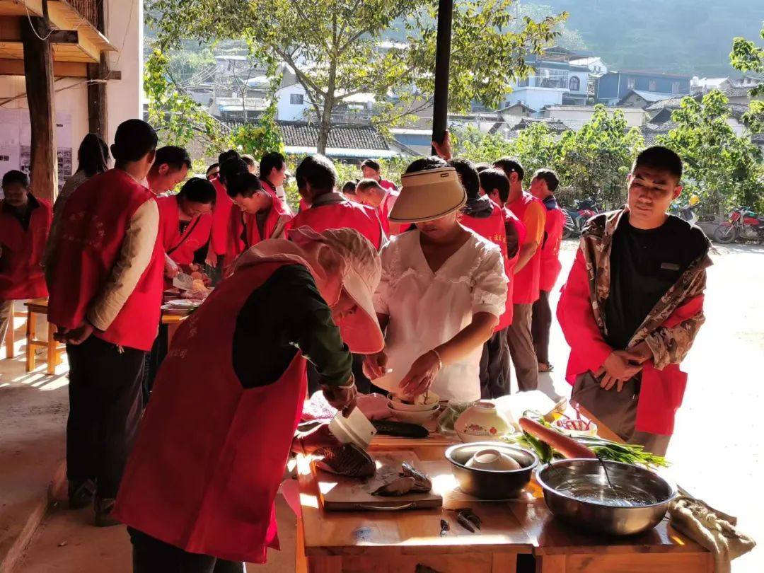 11月9日,在沙子坡村里勒组活动室,一群身着红色服装的“学生”正在忙碌着,洗菜声、切菜声、炒菜声和人们的欢笑声交织在一起,好不热闹。原来这是沙子坡村正在开展为期6天的农家菜烹饪培训,47名村民参加培训,共同学习探讨烹饪技巧,在家门口就能学到手艺。