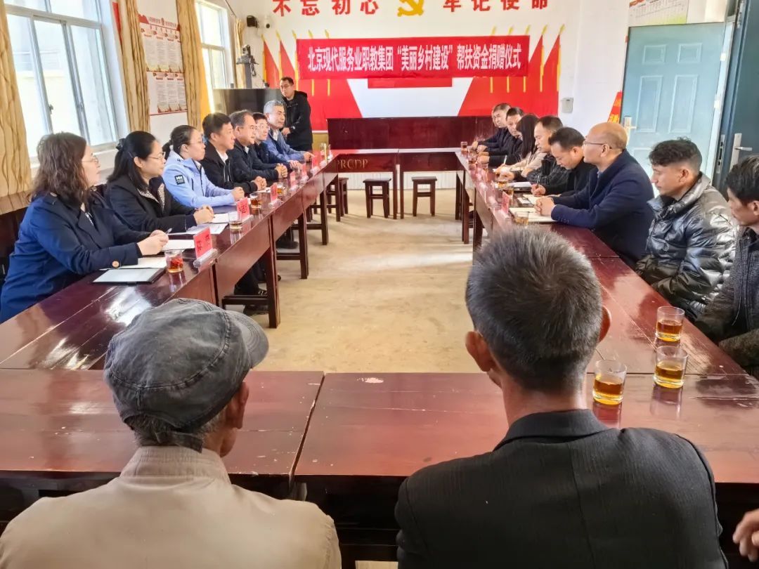 捐赠仪式上,新和村党总支书记就新和村近几年工作开展情况和“以奖代补”基金使用情况作汇报;腊勐镇党委书记向捐赠单位表示衷心感谢,并就全镇基本情况以及巩固拓展脱贫攻坚成果同乡村振兴有效衔接工作情况进行汇报;北京市商业学校党委书记就职教集团情况进行交流分享,对新和村取得的成绩表示肯定,并就新和村美丽乡村建设工作提出期望及建议;北京祥龙资产经营有限责任公司党委副书记、总经理作交流发言,希望不断完善双方交流互访工作常态化,促进结对共建向纵深发展;最后,开展了捐赠仪式,北京现代服务职教集团向新和村捐赠10万元人民币,用于新和村美丽乡村建设。