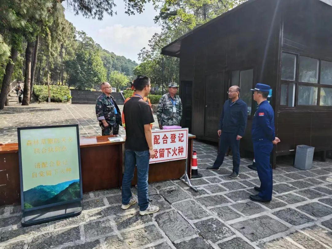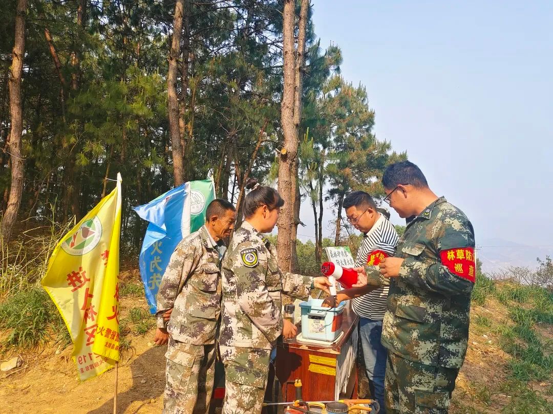 队伍严格巡山守卡点,护林防火不放松。充分发挥护林防火先锋队(护林员)作用,在入山路口和景区门口等共设置12个防火卡点,通过专人把守,严格巡山守卡点,严把“入山关”,对进入林区人员和车辆严格登记,严禁人员携带火源火种进入林区。“各位父老乡亲,进山上坟,不能烧香、烧火、烧纸钱。引发森林火灾是要坐牢的……”他们对每位进山人员,都不厌其烦地叮嘱防火和注意事项。同时,护林防火先锋队还深入坟山、重点林区、松山大战遗址纪念园、部分村庄等,开展防火知识宣传和火灾隐患排查,对排查出的隐患进行整改,主动防控,化解风险。