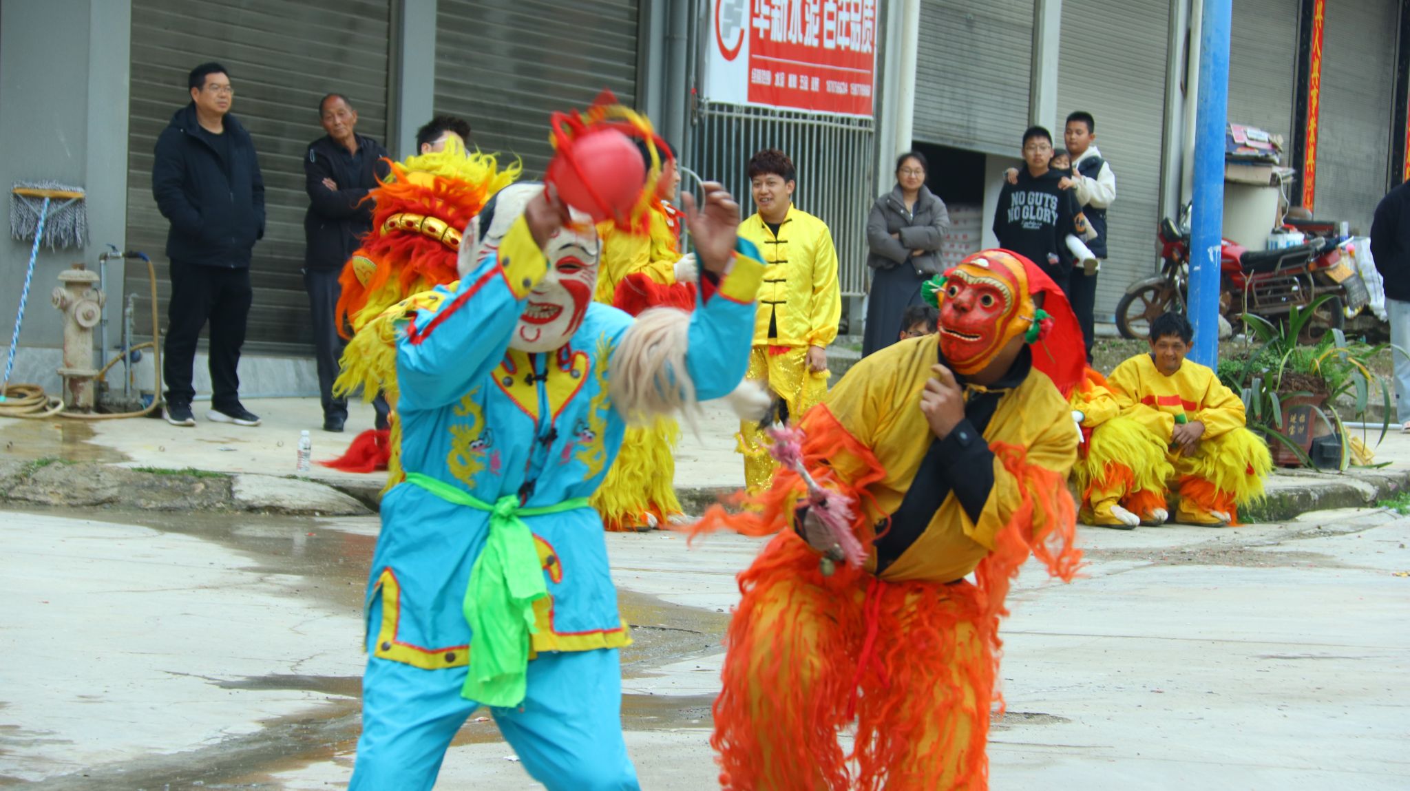 当日,表演的场地被围得水泄不通,村民们扶老携幼,早早赶来占得好位置。伴随着激昂的锣鼓声,两只威风凛凛的“狮子”闪亮登场。它们时而腾跃扑跳,时而摇头摆尾,活灵活现。每一个动作都精准有力,与锣鼓的节奏配合默契,引得观众们阵阵喝彩。期间,舞狮队还表演了传统武术。