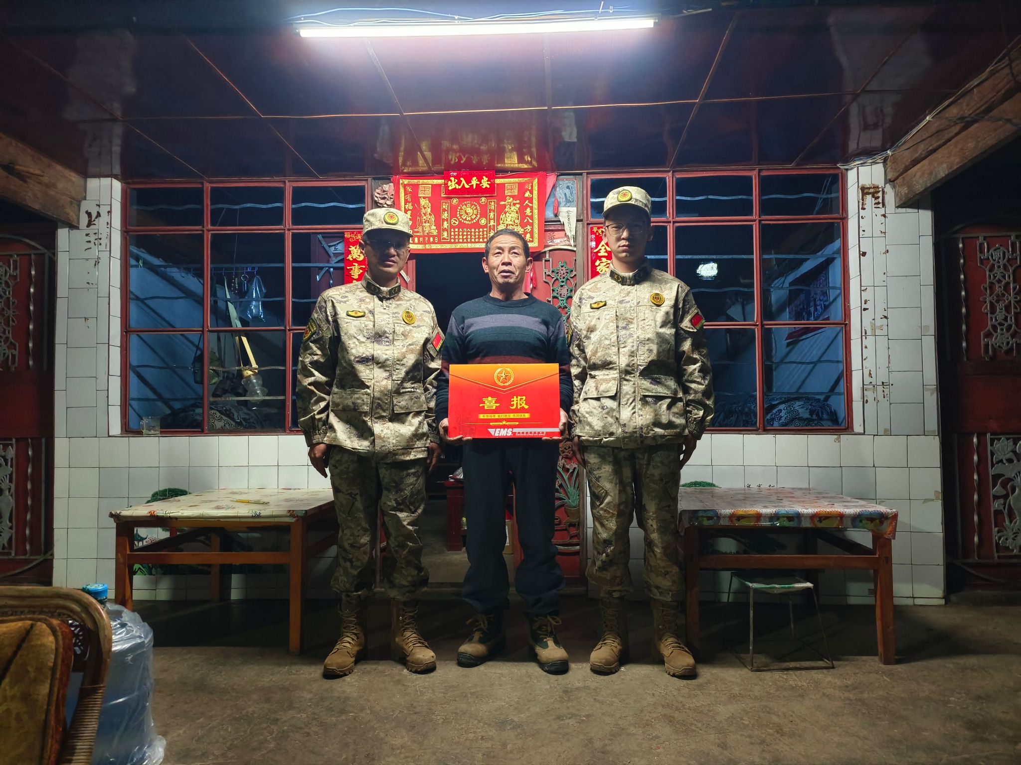 正值2025年上半年征兵期间,在送喜报的过程中,工作人员“借”喜报的影响力,积极向群众讲解征兵政策,鼓励适龄青年踊跃报名参军。