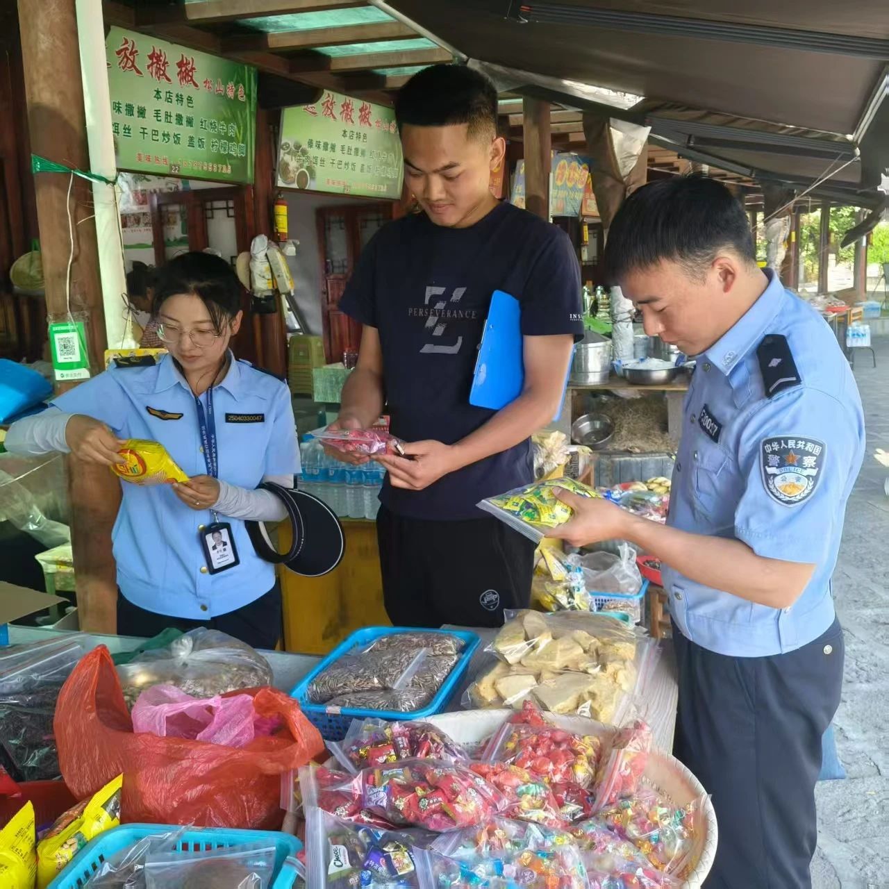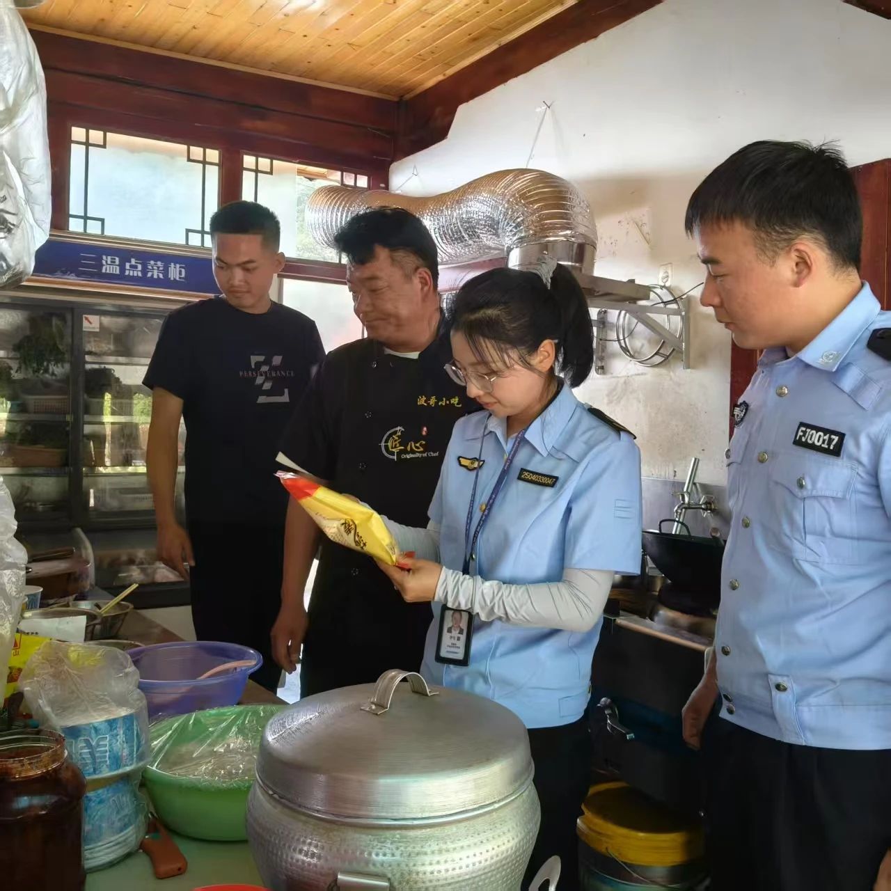 严把食品安全关,守护“舌尖上的安全”。以松山景区及周边餐饮服务单位、农家乐、食品摊贩为重点,检查经营主体资质、从业人员健康证明、食品原料采购贮存、加工操作规范等情况,严查“三无”、过期食品。并现场指导经营主体整改食品存放不规范、加工场所杂乱等问题,督促经营主体严格落实食品安全主体责任。