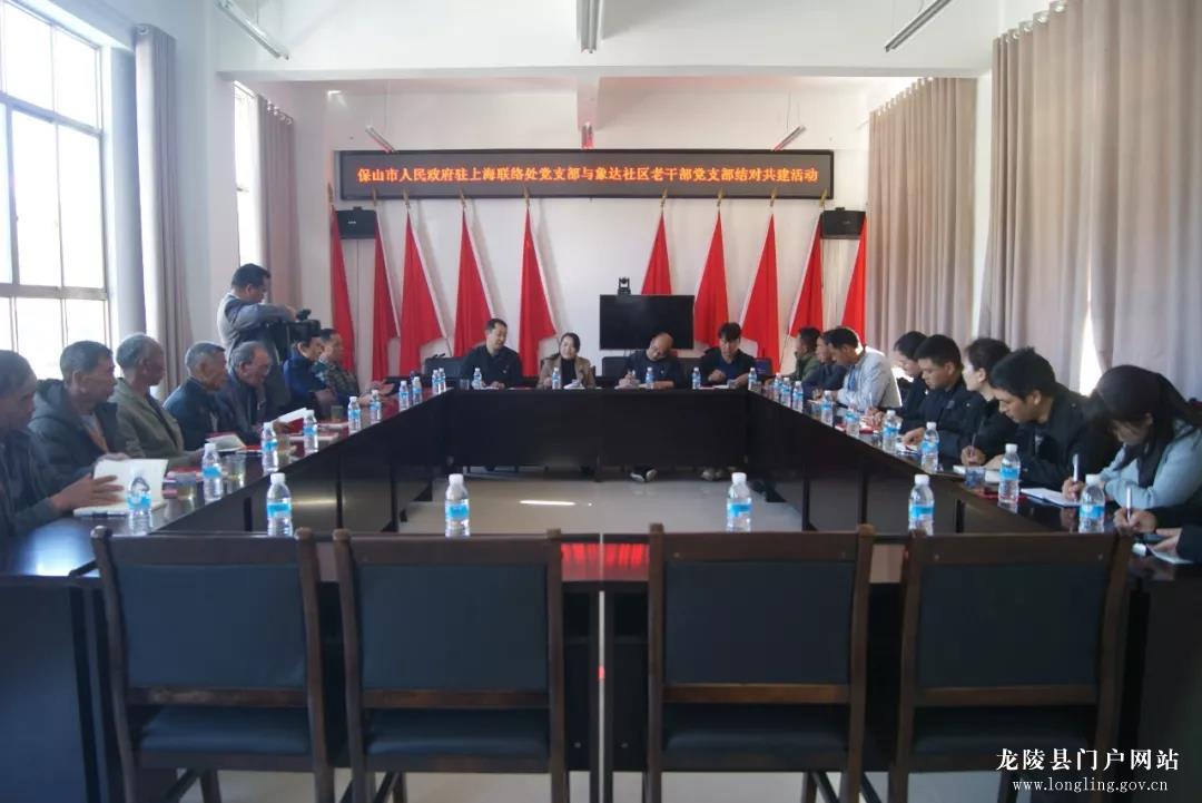 走访后,保山市人民政府驻上海联络处支部与象达社区老干支部的老党员们召开了座谈会,共同探讨象达镇的发展方向,为象达镇未来发展建言献策。保山市人民政府驻上海联络处主任杨新锦表示:希望通过联建活动的开展,充分发挥党支部的战斗堡垒作用和广大党员干部的先锋模范作用,实现我们两家之间的优势互补、资源共享、相互促进,实现共同发展。