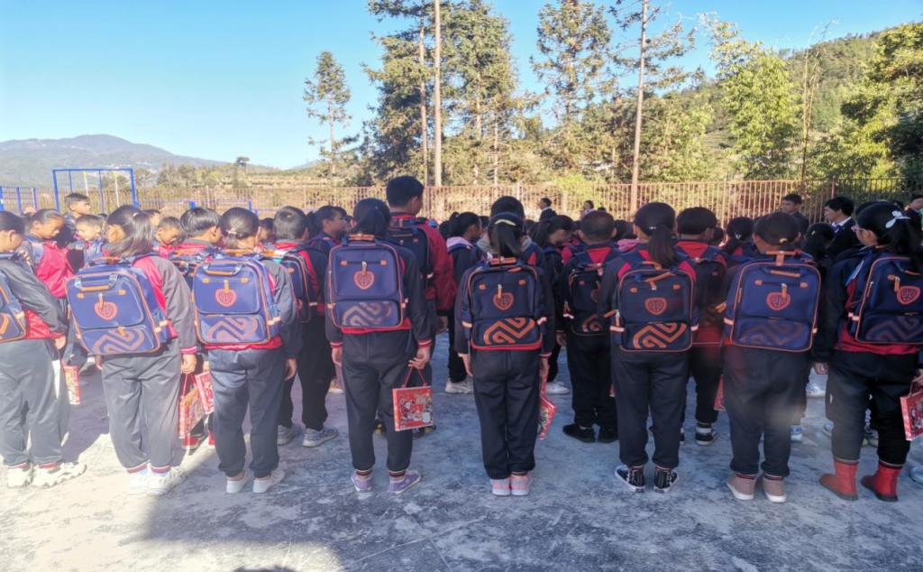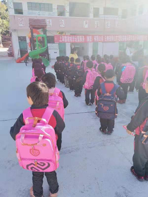 最后,由中心校校长及部分教师代表为学生发放上海雷盾城市运营服务(集团)有限公司对我校捐赠的书包和文具。