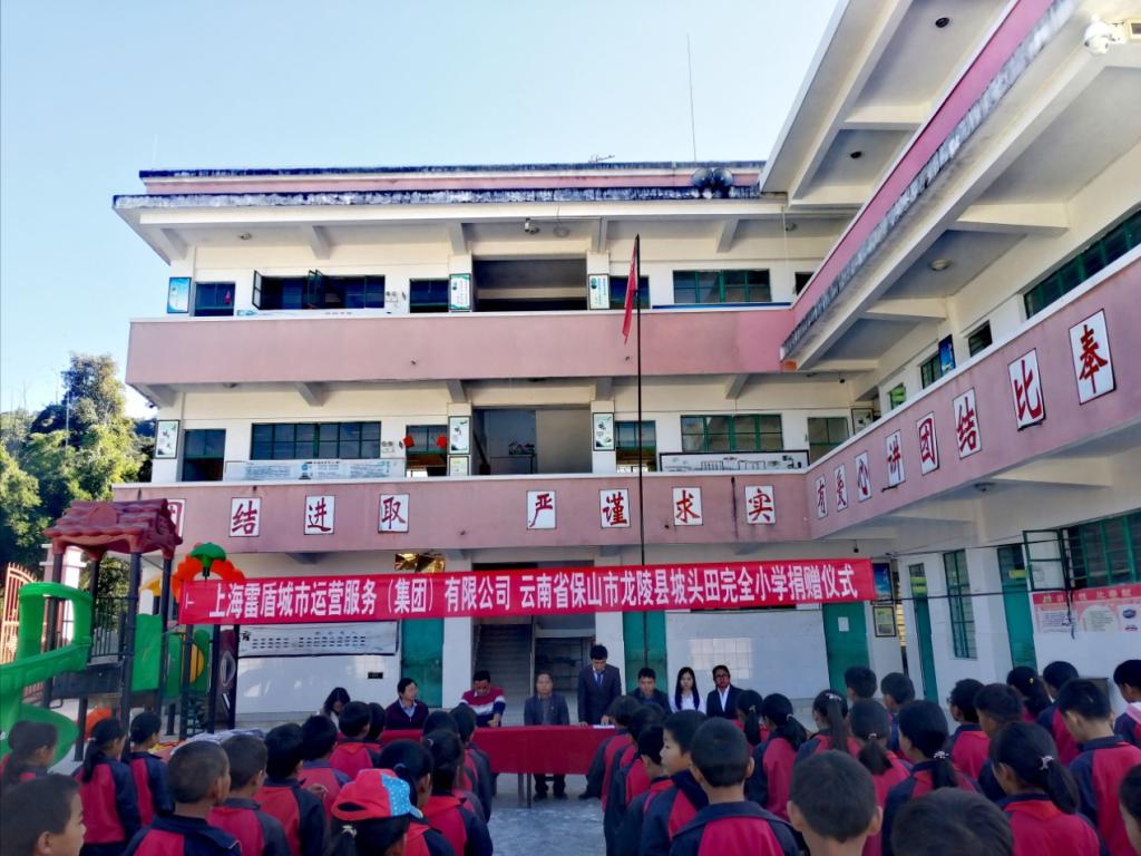 其次,坡头田完全小学校长代表全校全体老师和全体同学向上海雷盾城市运营服务(集团)有限公司表示感谢!