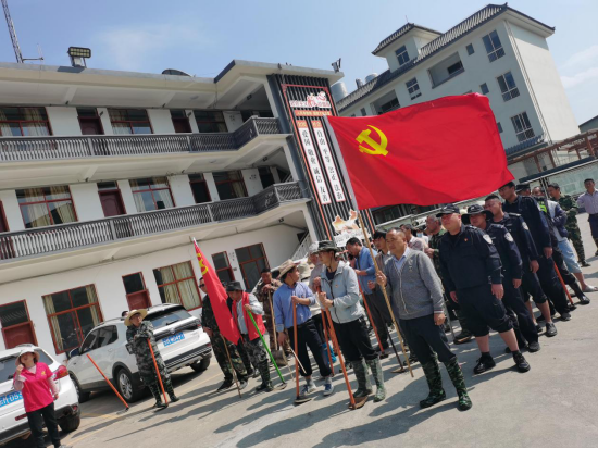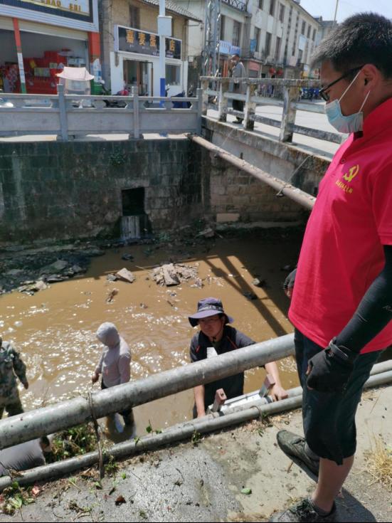 同志们有说有笑,既清理了河道,又拉近了干部职工、村干部、党员的感情,形成一股合力,建起一座堡垒。