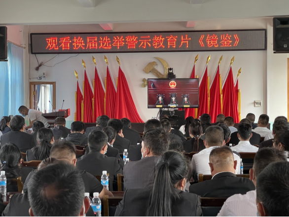 晚上组织观看了换届选举警示教育片《镜鉴》和《“乔氏家族”黑社会性质组织覆灭记》警示教育片。营造人人知敬畏,个个守规矩的风清气正的政治氛围。大会第一天议程圆满结束。